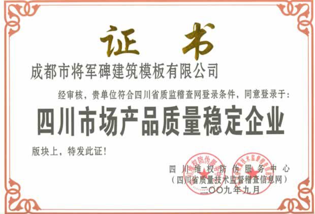 2009年四川市场产品质量稳定企业
